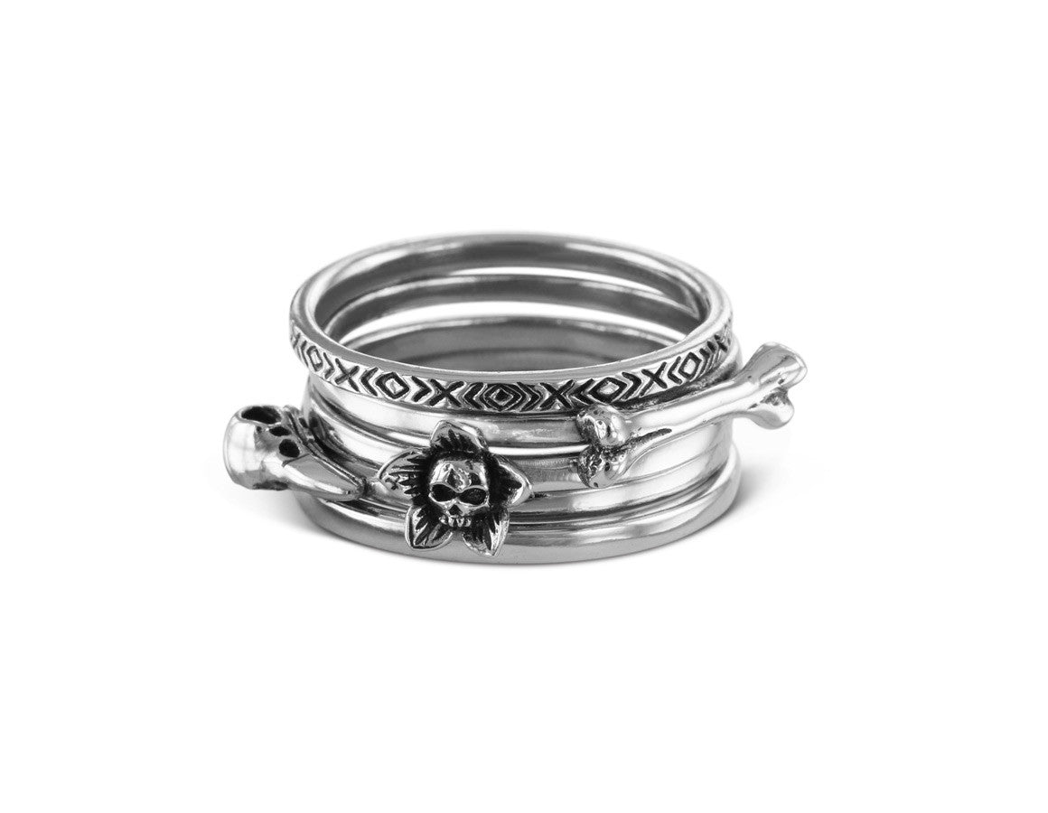 Part of our Stacking Ring collection, to wear alone or combined. A tiny flower, out of which an even tinier skull stares lifelessly out into the world. Wear alone for understated gothic elegance, or stacked for a look as individual as you are.